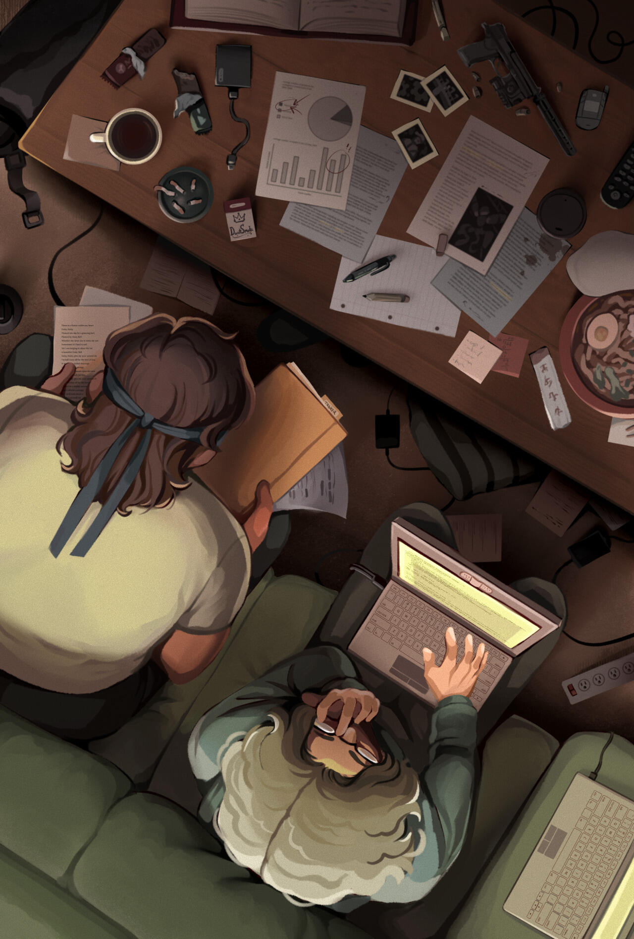I brought the cover, a full page illustration, and a spot illustration to finish. It was important to keep the character designs and overall feel cohesive. You can view how they were evolved and refined below.