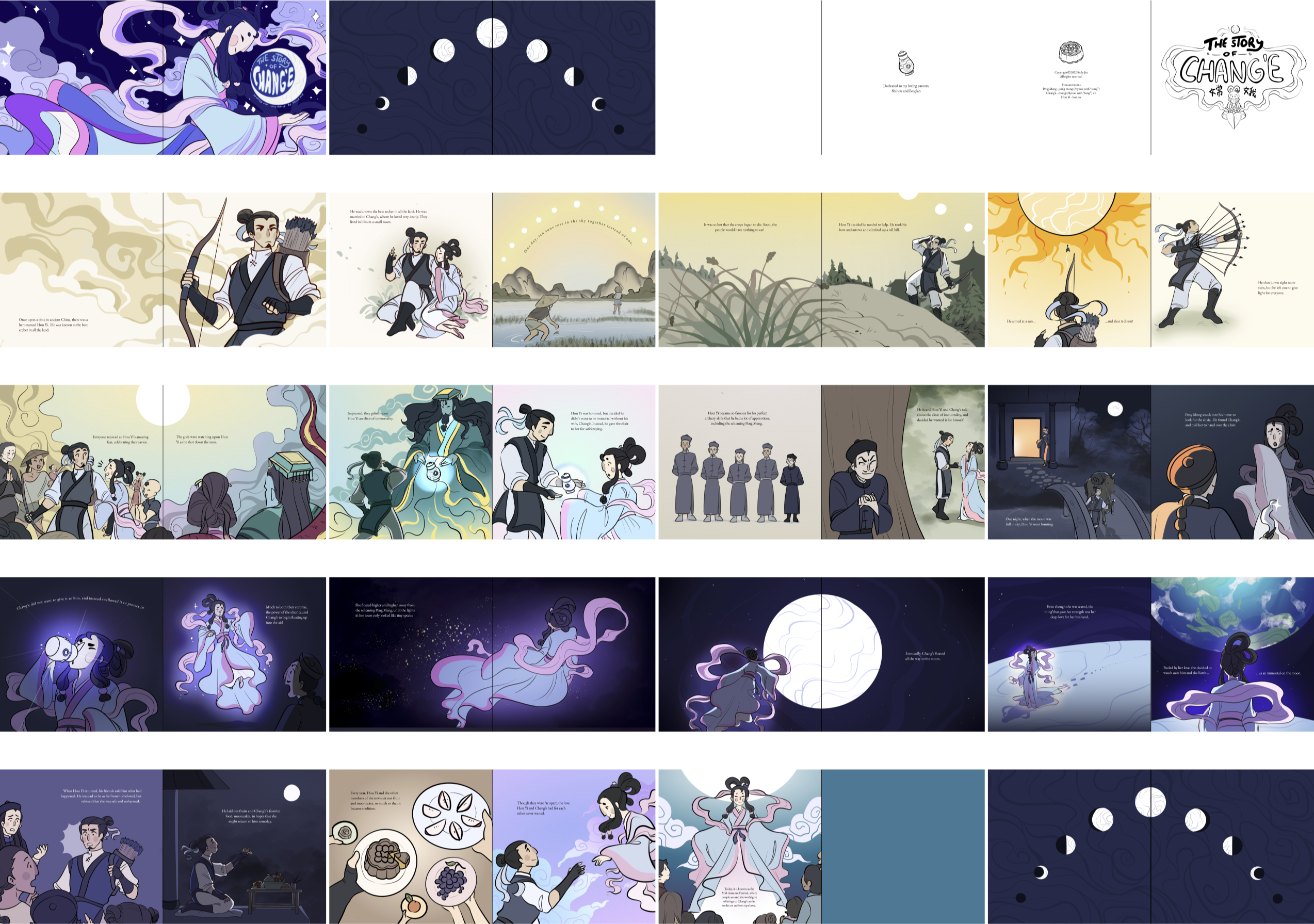 My identity as a first generation Chinese immigrant and artist has shaped every aspect of my life. I wanted to illustrate a story that lets me honor and share my roots with a younger audience.I chose to create a children's storybook version of Chang’e, which is a famous old Chinese folktale. It revolves around Chang’e, who became immortal through her love and now resides on the moon.