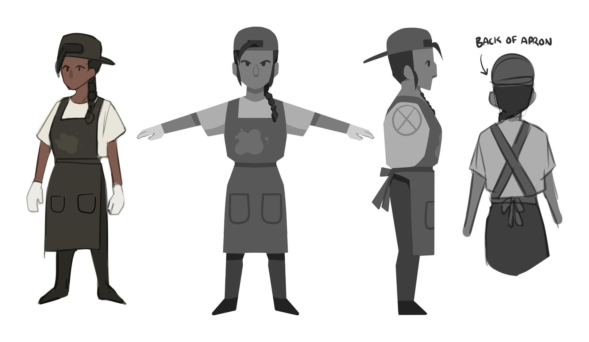 Many characters received visual overhauls during my time on the project, and I was in charge of reimagining them in a different style. I also created concept art and character sheets for several new characters.